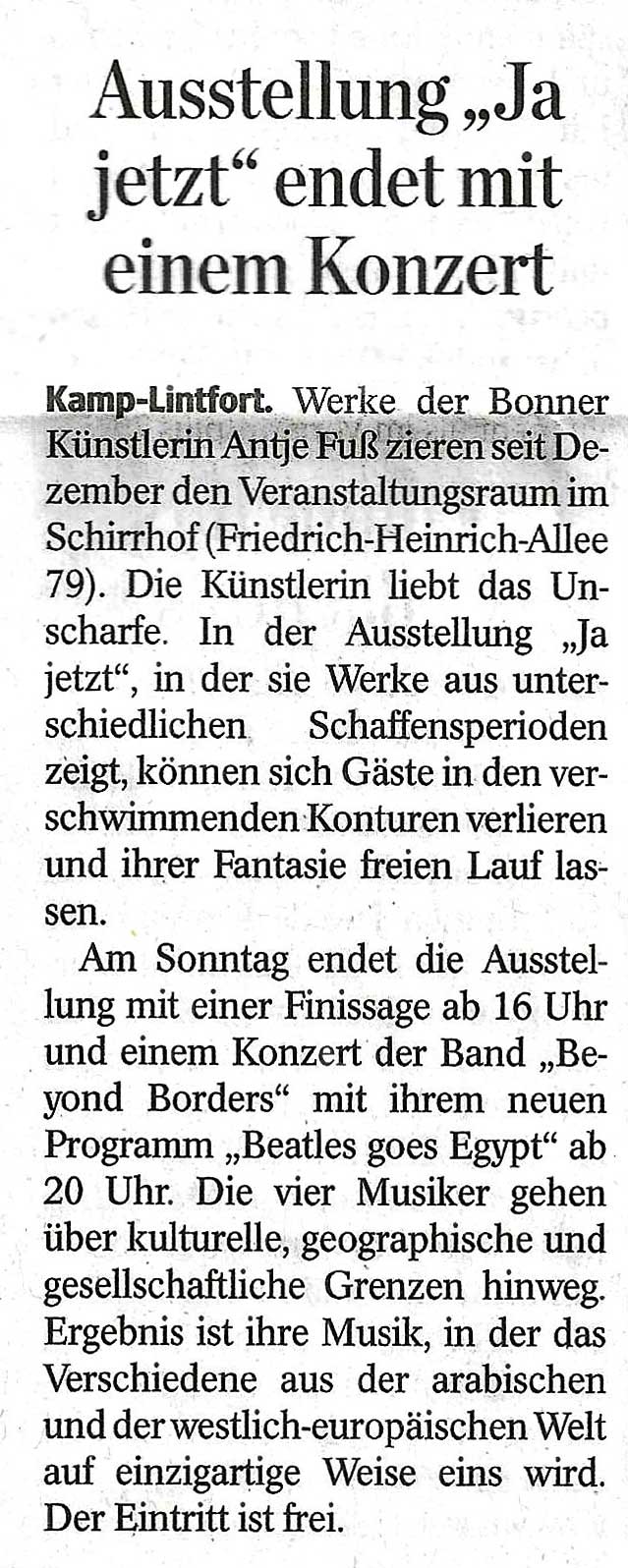 Ausstellung "Ja jetzt" endet mit einem Konzert